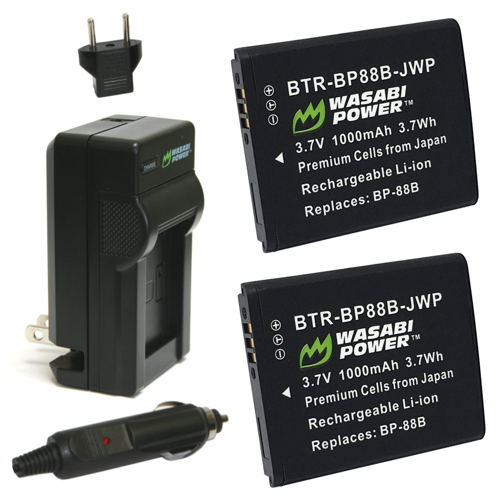 The Wasabi Power BP88B battery and charger kit includes 2 batteries and one charger with a European plug and car adapter. All items meet or exceed OEM standards and come with a 3-year manufacturer warranty. Batteries replace Samsung BP-88B.