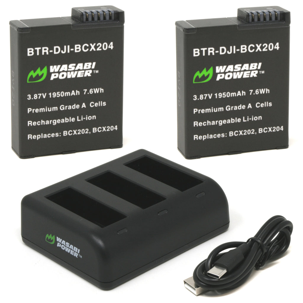 DJI BCX202, BCX204 OSMO Action Camera Battery (2-Pack) and Triple Charger by Wasabi Power