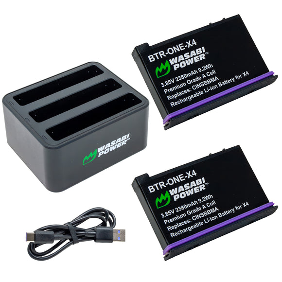 Insta360 X4 Battery (2-Pack) and Triple USB-C Charger by Wasabi Power