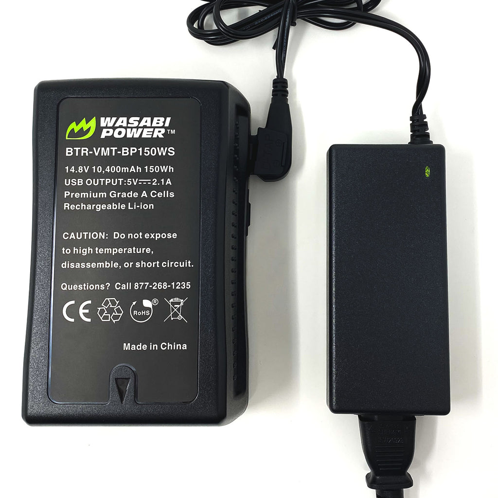 V-Mount Battery (14.8V, 10400mAh, 150Wh) and V-Mount Battery Charger with D-Tap by Wasabi Power