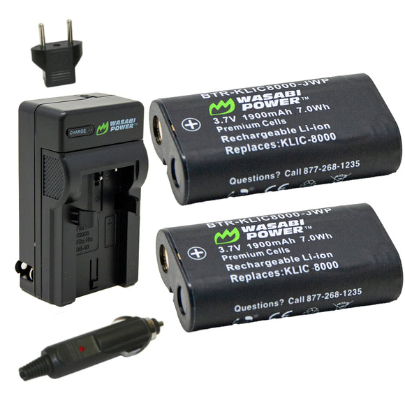 Kodak KLIC-8000 Battery (2-Pack) and Charger by Wasabi Power