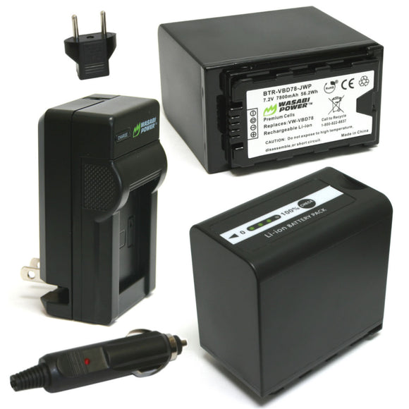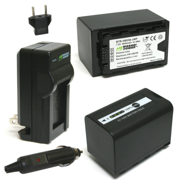 Panasonic VW-VBD58, VW-VBD78, AG-VBR89G Battery (2-Pack) and Charger by Wasabi Power