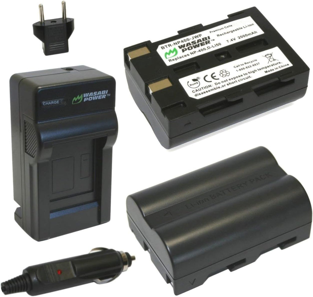 The Wasabi Power DLI50 Power Kit includes: 2 Hi-Capacity batteries with premium Grade A cells, 1 mini rapid charger (110/240V) with fold-out AC prongs, Car adapter to charge from your vehicle's DC/lighter outlet, European plug adapter for travel. All items meet or exceed OEM standards and come with a 3-year manufacturer warranty.