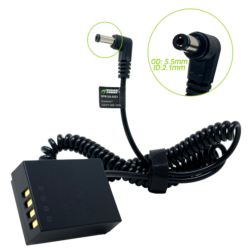 SKU: WSB-AC-DCC-NPW126-5521BENEFITS - Replacement for Fujifilm CP-W126, NP-W126 or NP-W126S AC Adapter Kit. A DC coupler (or dummy battery) allows you to continually power your camera from an outside power source. This means you can record longer without swapping batteries, overheating, or losing power. Works perfect for vlogs, video conferencing, online streams, webcams, time lapse, live broadcasts, extended studio sessions, uploading files to PC, playing back media on a TV, and more.
