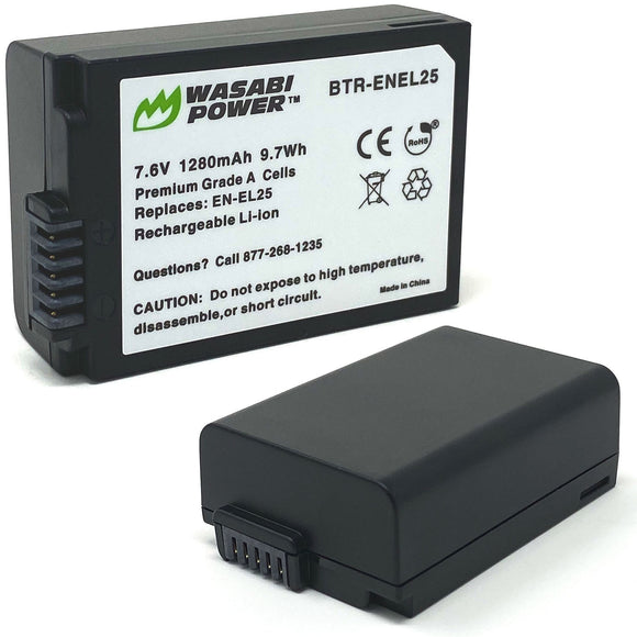 The Wasabi Power ENEL25 battery replaces the Nikon EN-EL25 EN-EL25a battery. These batteries are fully decoded, which means that they will perform like the Nikon original, displaying the remaining battery life on the camera. They are fully compatible with the Nikon camera and charger. All items meet or exceed OEM standards and come with a 3-year manufacturer warranty.