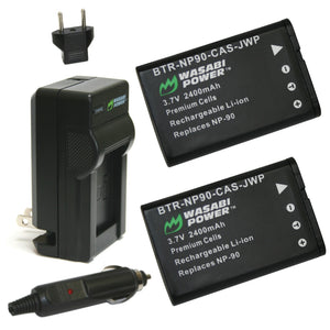 Casio NP-90 Battery (2-Pack) and Charger by Wasabi Power