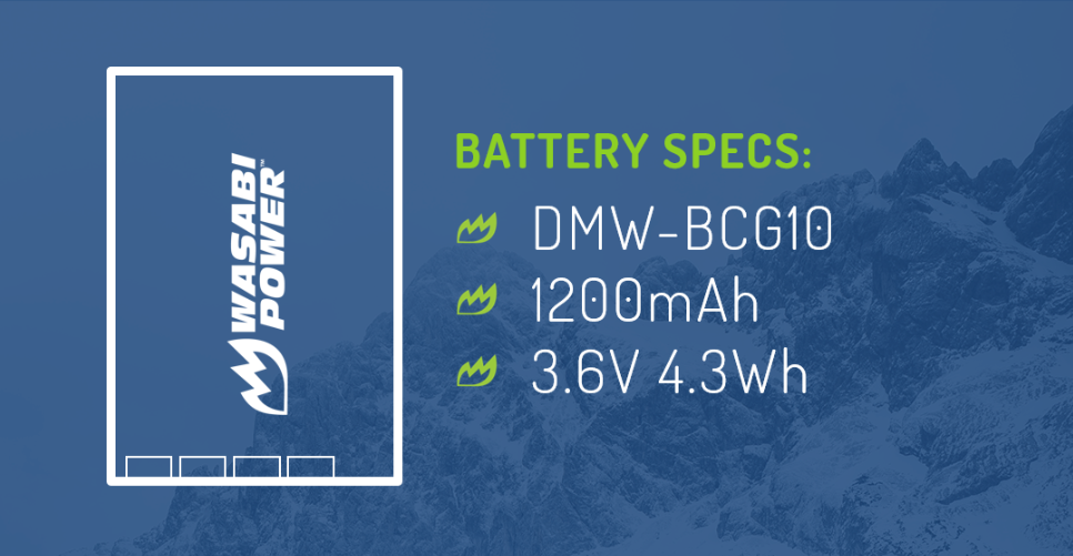 SKU: WSB-BTR-BCG10This Wasabi Power battery replaces the Panasonic DMW-BCG10 digital camera battery. It meets or exceeds OEM standards.