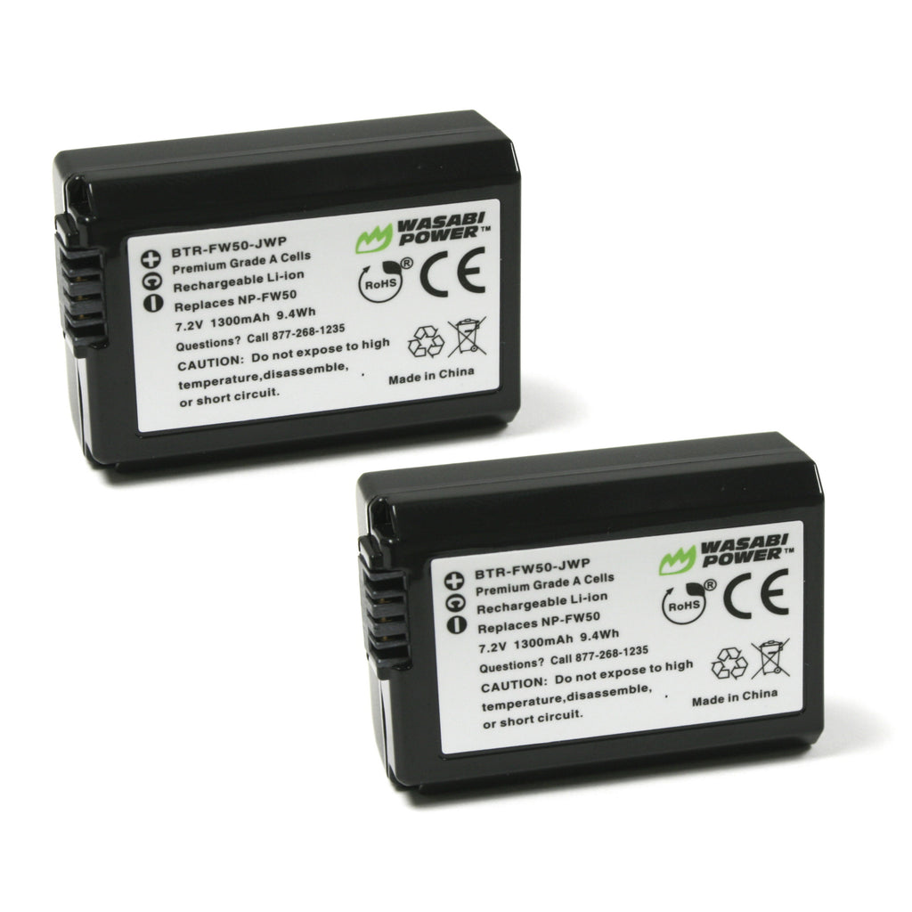 SKU: WSB-BTR-FW50-2PKThe Wasabi Power FW50 battery replaces the Sony NP-FW50 battery. It features 1300mAh to provide a longer run-time between charges. It is made with Premium Grade-A cells to provide maximum battery life. Includes 2 batteries with a 3-year manufacturer warranty. Additionally, the Wasabi Power FW50 is completely compatible with all Sony original equipment including the Sony charger. Need Sony Alpha a6500 batteries? Wasabi Power is a great replacement!