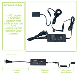 INCLUDES - 1 DC coupler and 1 AC power adapter with cable so you can have uninterrupted power in your camera
