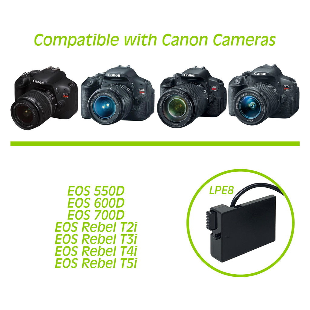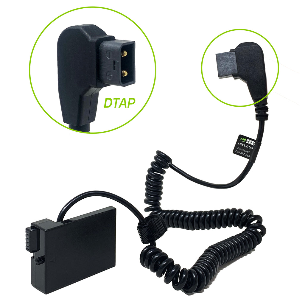 SKU: WSB-DCC-LPE8-DTAPBENEFITS - A DC coupler (or dummy battery) allows you to continually power your camera from an outside power source with a DTAP plug-in. This means you can record longer sessions without swapping batteries, overheating, or losing power. Works perfect for vlogs, video conferencing, live streams, webcams, time lapse, live broadcasts, extended studio sessions, uploading files to PC, playing back media on a TV, and more.