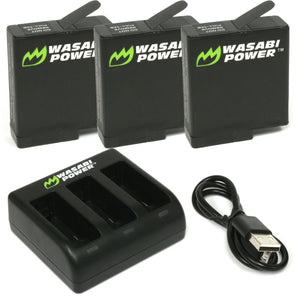 GoPro HERO7 Black, HERO6, HERO5 Battery (3-Pack) and Triple Charger by Wasabi Power