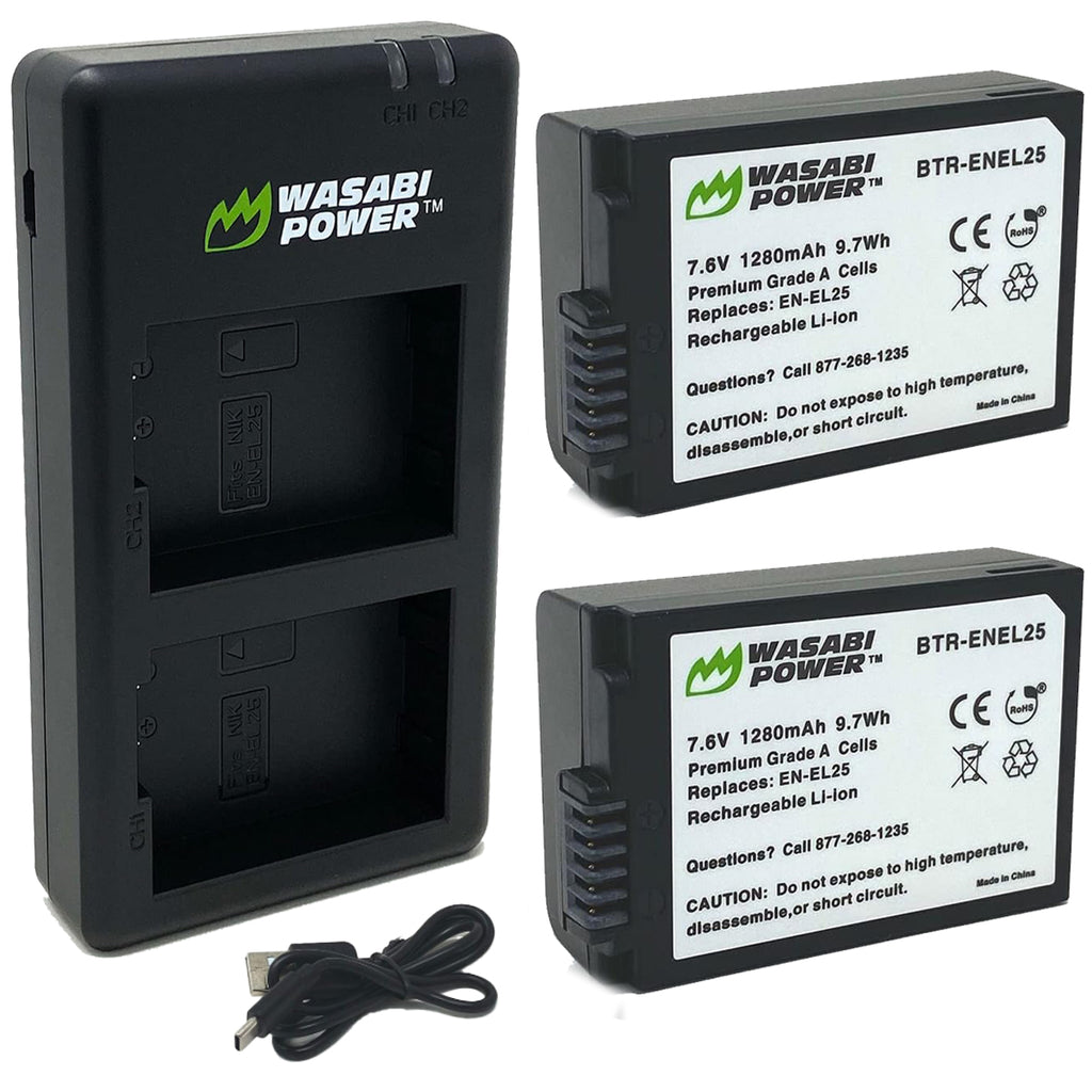 SKU: WSB-KIT-FC-ENEL25This Wasabi Power kit includes 2 batteries and one dual USB-C charger that is compatible with the ENEL25, EN-EL25a. All items meet or exceed OEM standards and come with a 3-year manufacturer warranty.