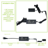 INCLUDES - 1 DC coupler and 1 AC power adapter with cable so you can have uninterrupted power in your camera