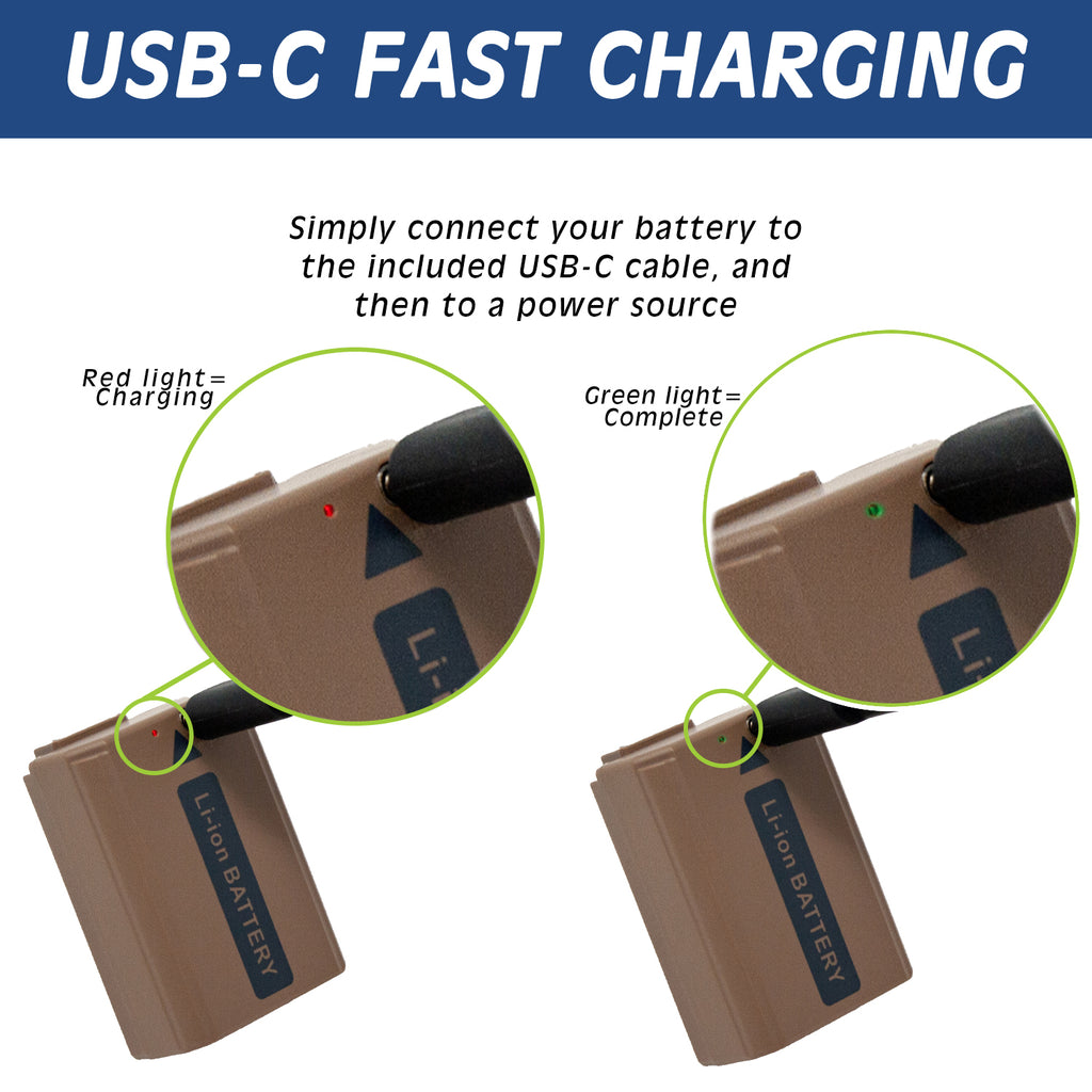 Sony NP-FW50 Battery with USB-C Fast Charging by Wasabi Power