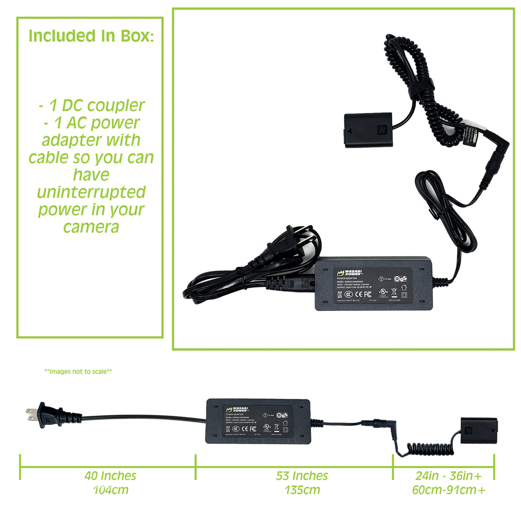INCLUDES - 1 DC coupler and 1 AC power adapter with cable so you can have uninterrupted power in your camera