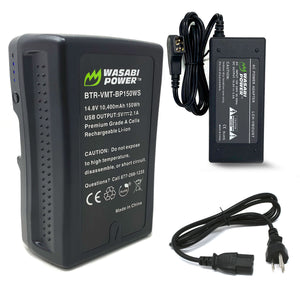 V-Mount Battery (14.8V, 10400mAh, 150Wh) and V-Mount Battery Charger with D-Tap by Wasabi Power