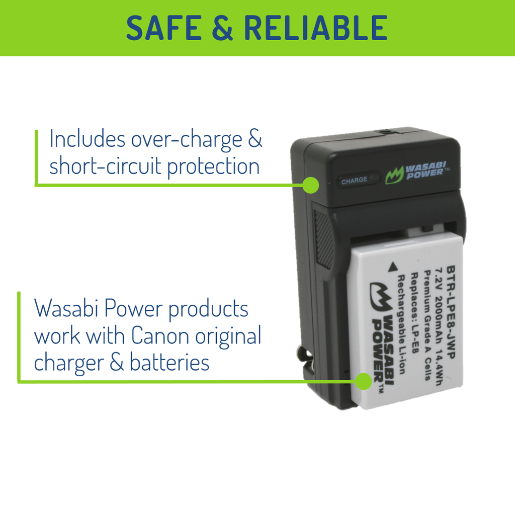 Canon LP-E8 Battery (2-Pack) and Charger by Wasabi Power