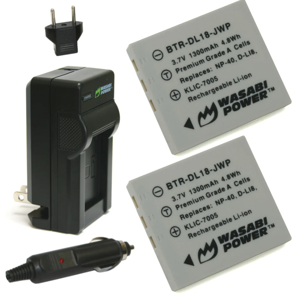This Wasabi Power Power Kit includes: 2 Hi-Capacity batteries with premium Grade A cells, 1 mini rapid charger (110/240V) with fold-out AC prongs, Car adapter to charge from your vehicle's DC/lighter outlet, European plug adapter for travel. All items meet or exceed OEM standards and come with a 3-year manufacturer warranty.