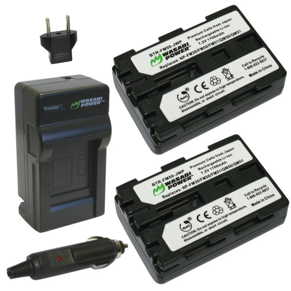 Sony NP-FM50 Battery (2-Pack) and Charger by Wasabi Power
