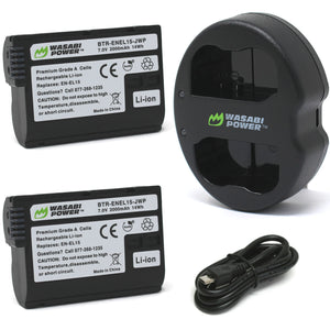 Nikon EN-EL15, EN-EL15a, EN-EL15b, EN-EL15c Battery (2-Pack) and Dual Charger by Wasabi Power
