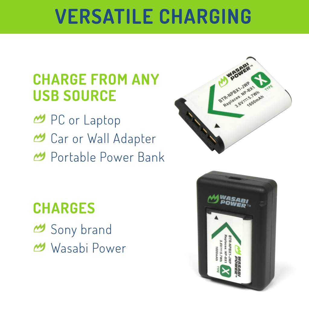 Sony NP-BX1, NP-BX1/M8 Battery (2-Pack) and Dual Charger by Wasabi Power