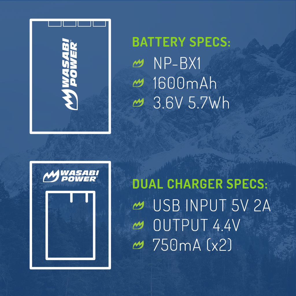 SKU: WSB-KIT-BB-NPBX1This Wasabi Power NPBX1 battery and charger kit includes 2 batteries and one dual USB charger. All items meet or exceed OEM standards and come with a 3-year manufacturer.