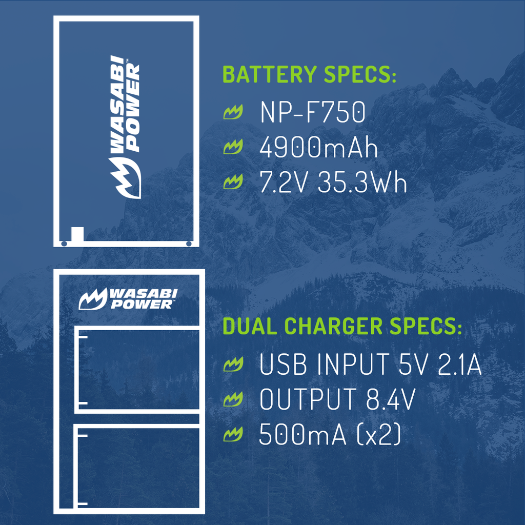 SKU: WSB-KIT-BB-NPF750The Wasabi Power NP-F750 includes 2 batteries and one dual USB charger. All items meet or exceed OEM standards and come with a 3-year manufacturer warranty. Need a Sony L series battery? Grab a Wasabi Power L series battery. It's a great replacement!