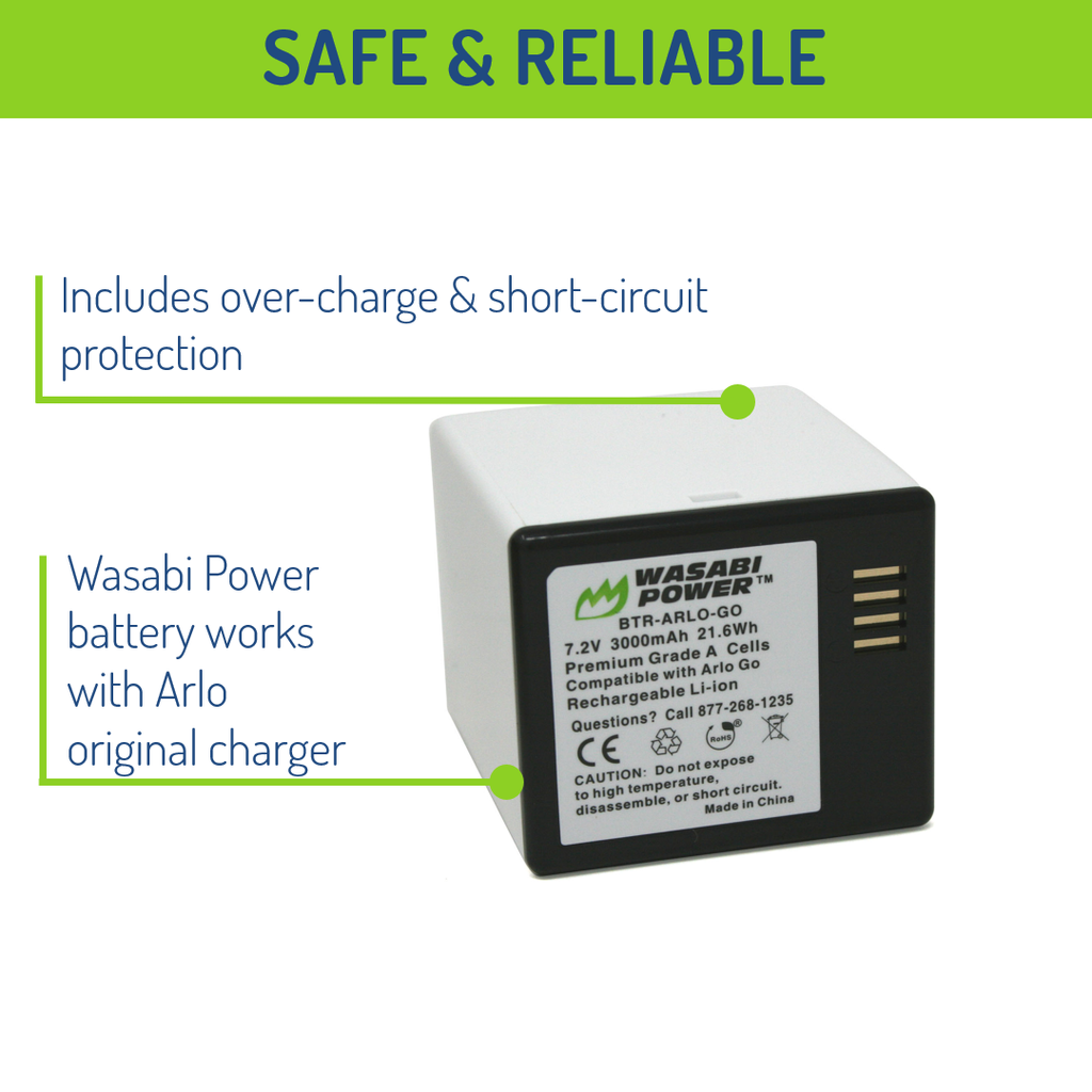 This Wasabi Power battery is a replacement for Arlo A-2 or VMA4410 batteries designed for the Arlo Go camera. This battery is completely compatible with all original equipment including the Arlo charger.