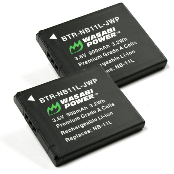 SKU: WSB-BTR-NB11L-2PKThe Wasabi Power NB11L battery replaces the Canon NB-11L battery pack. This battery features 900mAh which provides a longer run-time between charges. It is made with Premium Grade-A cells to provide maximum battery life and also comes with a 3-year manufacturer warranty. Additionally, the Wasabi Power NB11L is completely compatible with all Canon original equipment including the Canon charger.