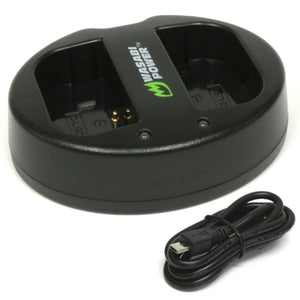 SKU: WSB-LCH-DC-DLI90This Wasabi Power dual USB charger fully charges 2 batteries at a time from any USB power source.